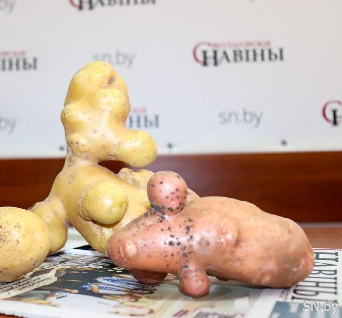 В редакцию «СН» заглянула Нина Шлапакова со своим урожаем. Нет, не для продажи, а для того, чтобы поделиться капризами природы. На своем огороде в Вежнах она вырастила картофель, который совсем не похож на стандартный. «Занимаюсь огородными делами давно, — говорит Нина Павловна, — но такого урожая еще не было. И хотя сорта картофеля всем известны («Королева Анна», «Лилея», «Родриго»), в этом году отдельные экземпляры меня удивили».