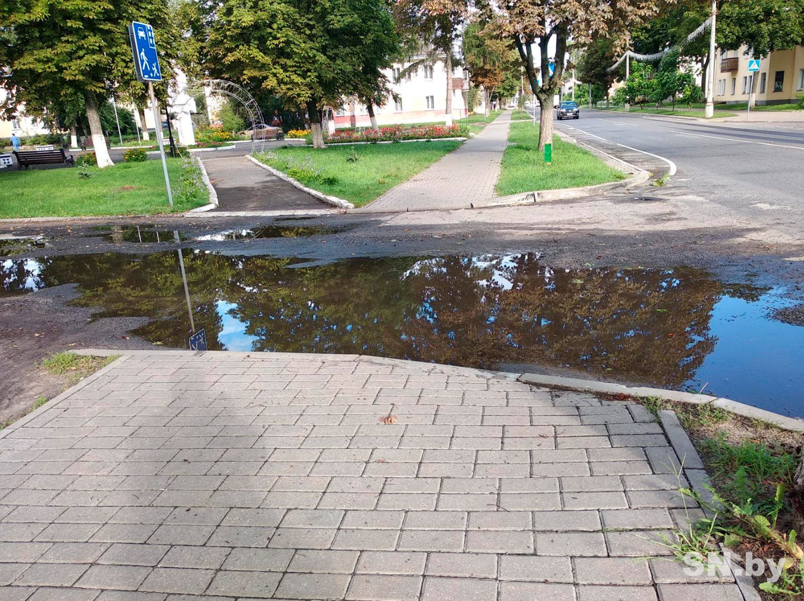 Такое вот «море» можно увидеть на пути к пешеходному переходу в районе ДКЭ по ул.Ленина после обильных дождей. И все бы ничего, да вот только это «море» преграждает проход к пешеходному переходу. А потому все пешеходы выходят на проезжую часть, рискуя попасть под движущийся транспорт.