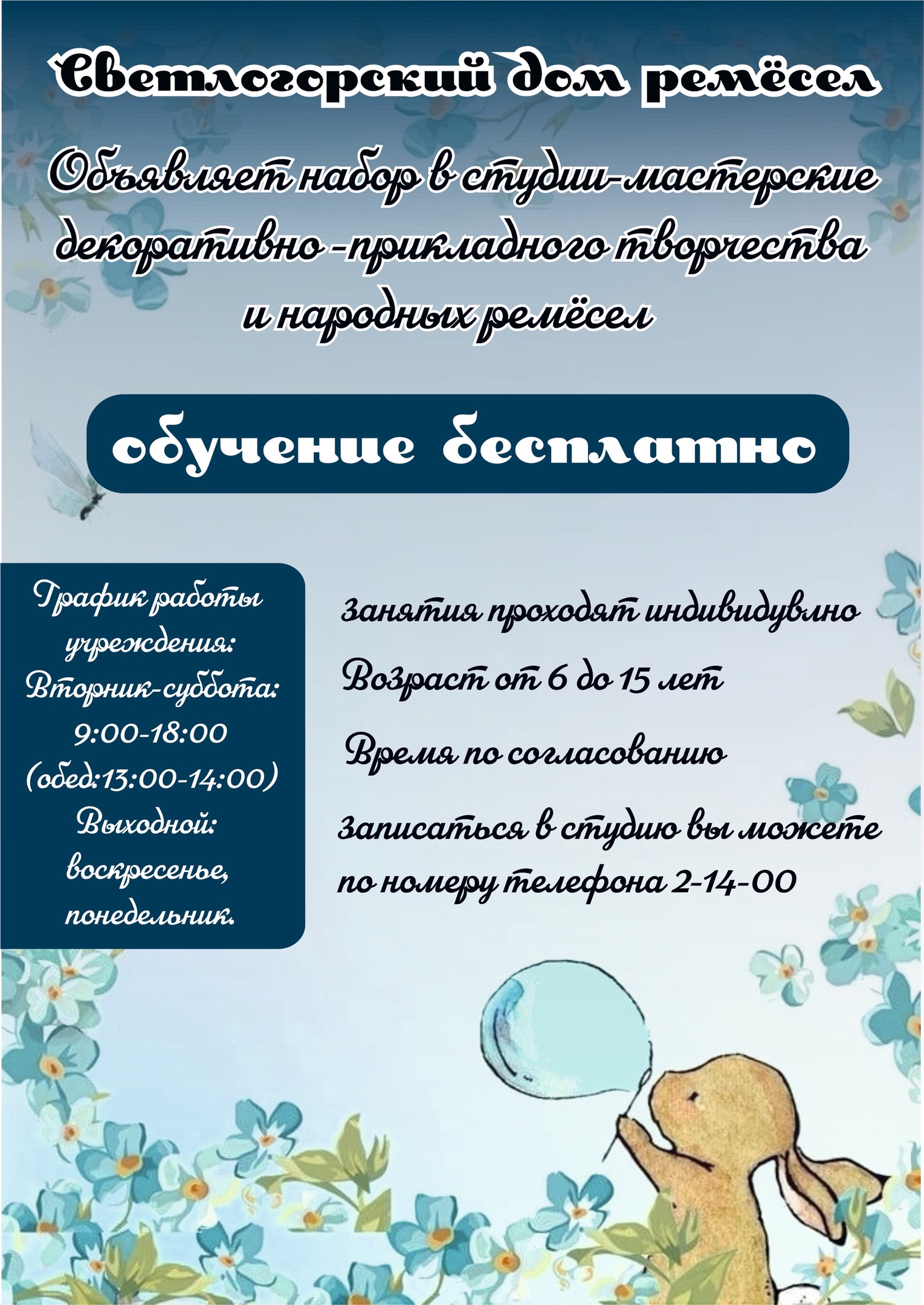 Светлогорский дом ремесел приглашает на бесплатное обучение.