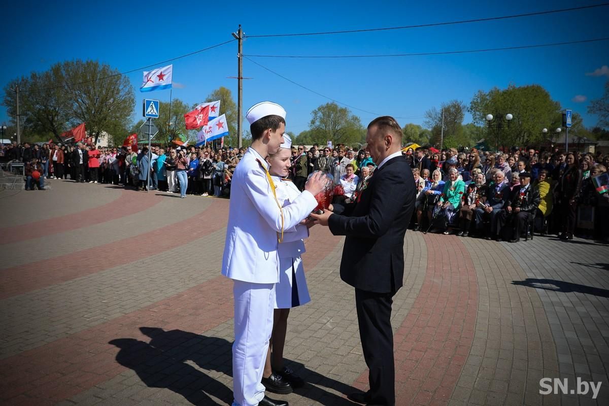 У «Скорбящего колокола» состоялся торжественный митинг «Вечной памятью живы!» Светлую память всех погибших в той страшной войне почтили минутой молчания и возложили цветы. Сегодня завершилась акция-эстафета «Огонь памяти», которую школьники района проводили на протяжении нескольких месяцев. Лампада «побывала» во всех учреждениях образования, а сегодня на митинге была передана председателю Светлогорского райисполкома Дмитрию Алейникову.