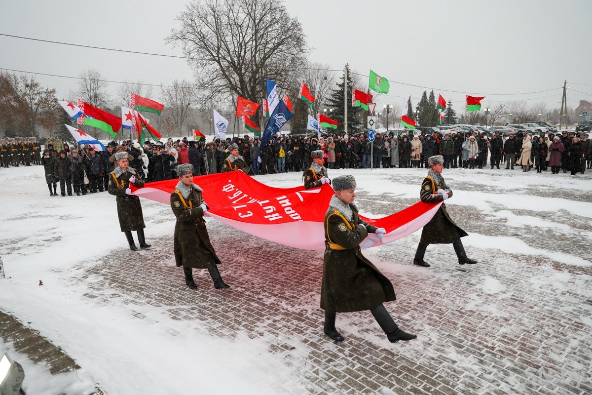 Торжественный митинг у «Скорбящего колокола» стал следующей остановкой в маршруте участников республиканской акции «На пути к Победе!» Акция проходит по принципу эстафеты с соблюдением хронологического порядка, в котором 80 лет назад освобождались населенные пункты, а враг навсегда изгонялся с белорусской земли. Первым Знамя Победы принял городской поселок Комарин, находящийся на территории Брагинского района. Символ Победы уже побывал в нескольких городах Гомельской области. Сегодня в торжественной обстановке в присутствии многочисленных гостей прошла передача Знамени Победы от Светлогорского района Наровлянскому.