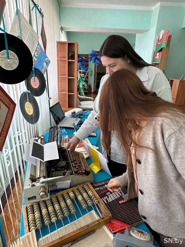 Прямо в фойе можно было перелистать страницы летописи и альбомов, посмотреть многочисленные фотоснимки, на которых запечатлена жизнь библиотеки в разные годы и её сотрудники, благодаря которым библиотека стала живой и любимой. А в читальном зале – познакомиться с музейной экспозицией «Из века прошлого – в день настоящий». На ней было представлено то, что использовали в своей работе библиотекари ХХ и ХХI веков: пишущая машинка, грампластинки с записями детских сказок и пионерских песен, кассетный магнитофон, фотоаппарат «Зенит», телефон с диском и даже бухгалтерские счеты.