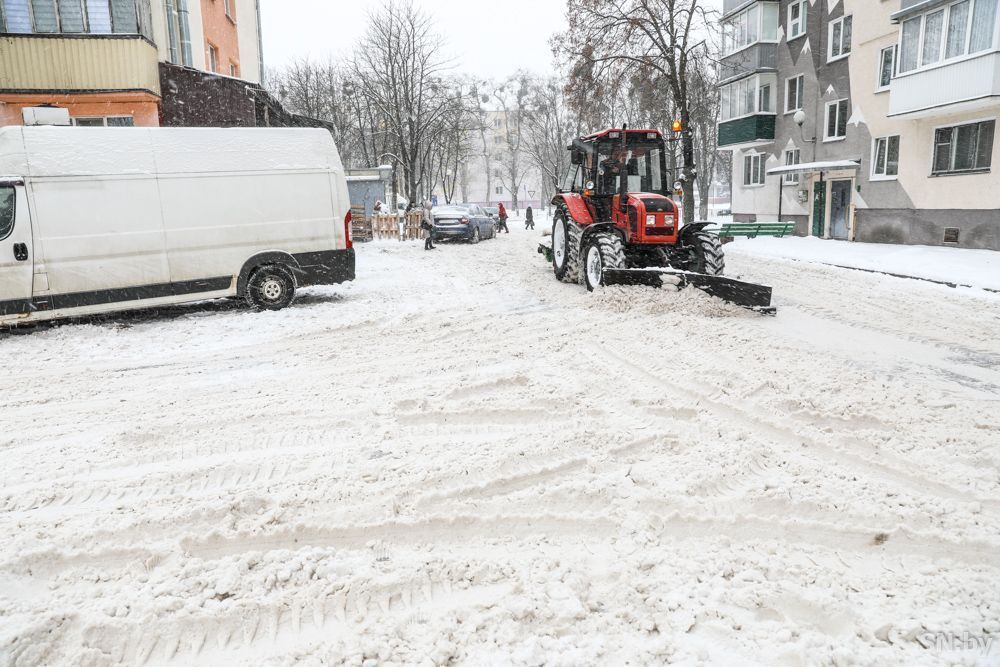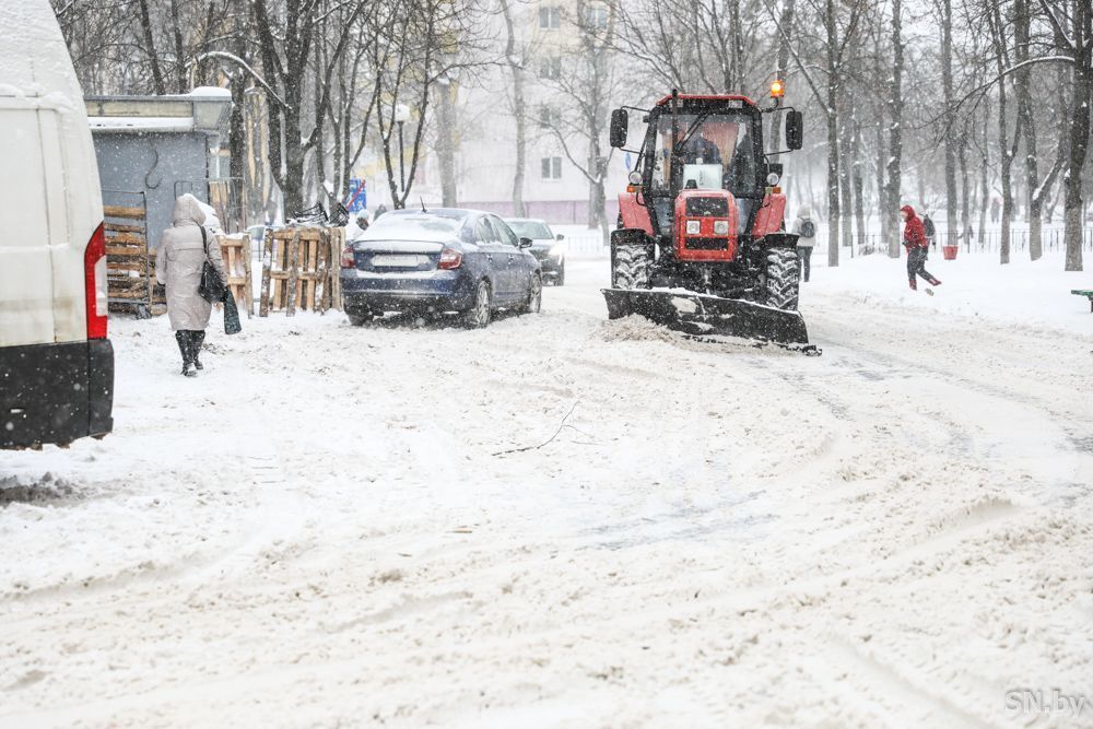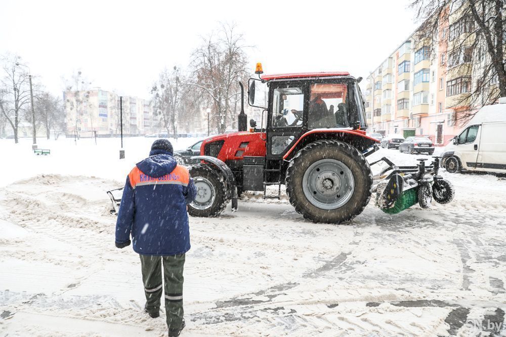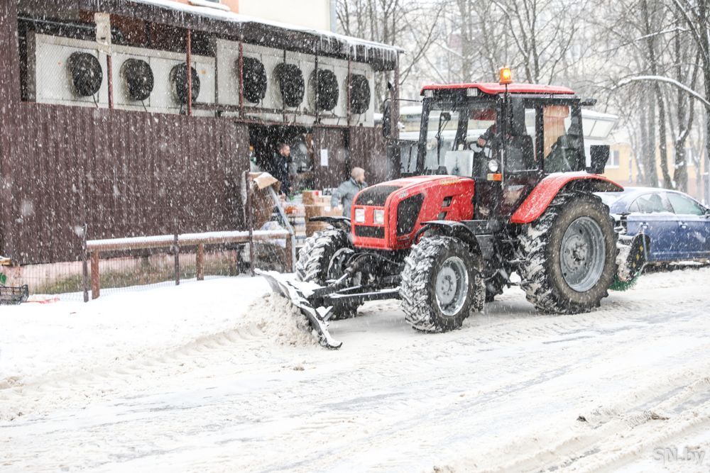 В Светлогорске тракторы расчищают пешеходные дорожки от снега