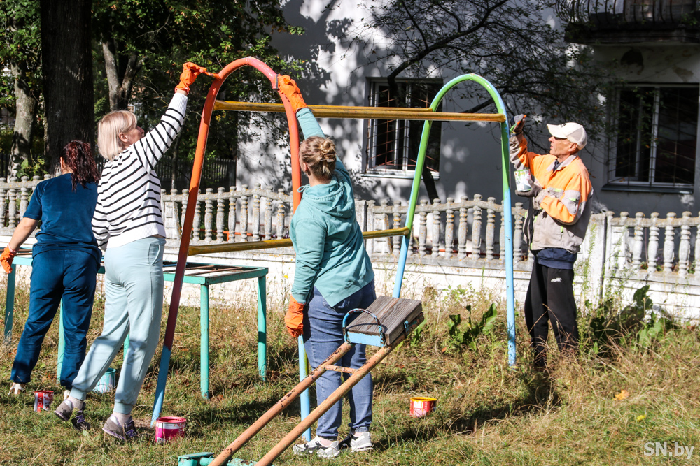 Так, вчера «кипела» работа в одном из городских дворов по ул.Ленина. Дружная команда трудового десанта взяла инициативу по наведению порядка в свои руки. Неравнодушным светлогорцам понадобилось буквально пара часов для того, чтобы детское игровое оборудование во дворе и скамейки заиграли яркими красками. Результат проделанной работы порадовал всех.