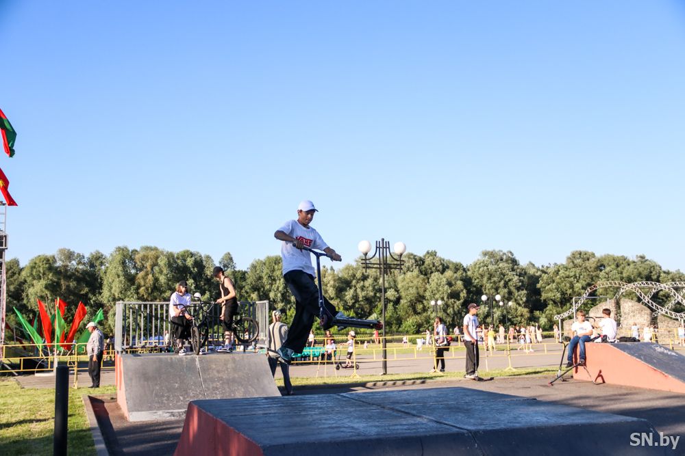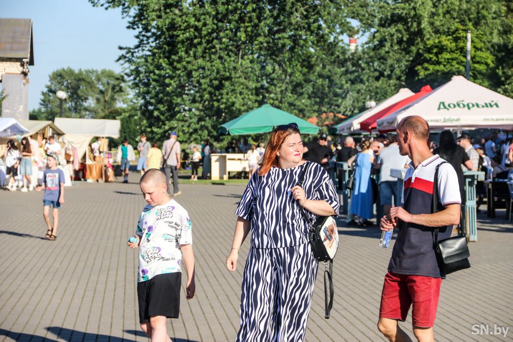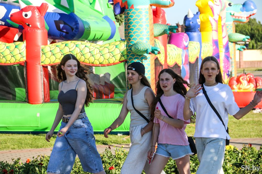 Свою независимость белорусы отмечают громко и масштабно. К вечеру светлогорцы собираются у праздничных локаций целыми семьями.