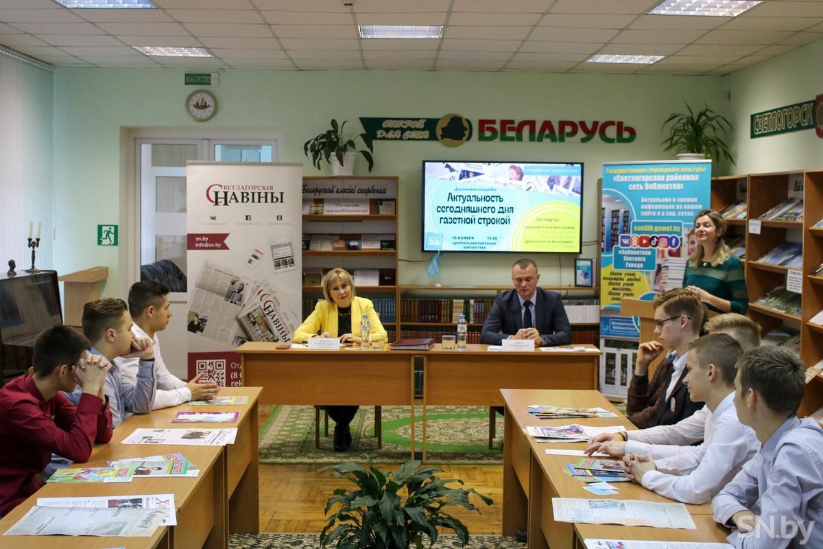 В роли экспертов встречи выступили люди, которые не понаслышке знают, что значит работа в сфере журналистики, — главный редактор районной газеты «Светлагорскія навіны» Елена Шишкова и редактор газеты «Химики» Антон Драпеза. Участники диалоговой площадки – старшеклассники городских школ, которые совсем скоро должны определиться с будущей профессией.