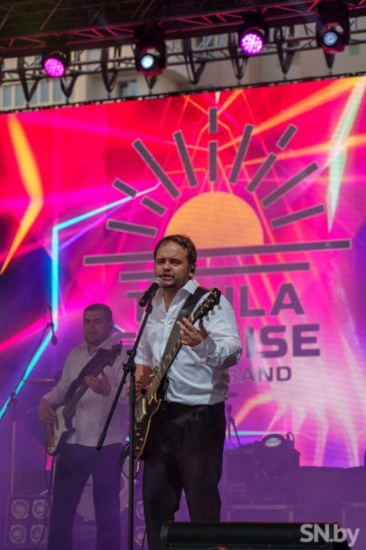 На Центральной площади радовали своими выступлениями кавер-группа «Tekila Sunrise», Никита Белько и Настя Кравченко, а также известная белорусская группа «Аура».