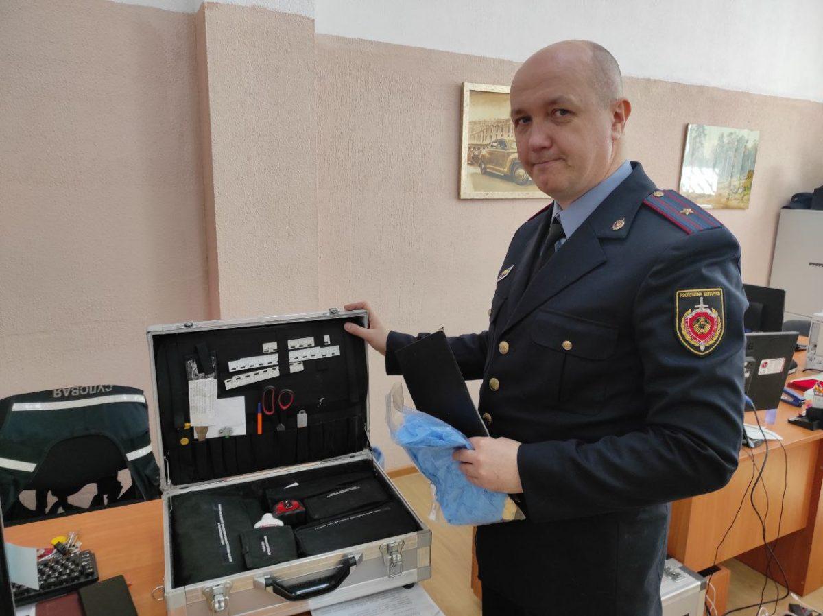 Отвлекаясь от разговора, Андрей Васильевич с удовольствием демонстрирует свой рабочий чемодан. В нем – разные инструменты от обычного фонарика до дактилоскопических порошков и специальных пленок для изъятия следов.