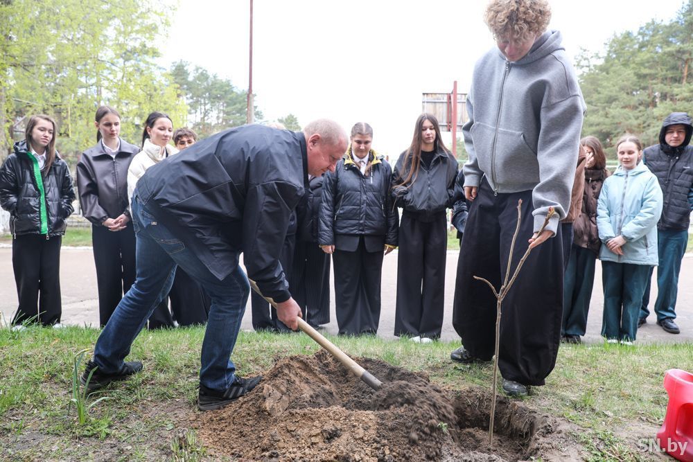 О своем участии в ликвидации последствий аварии на Чернобыльской АЭС в 1986 году школьникам рассказал Петр Николаевич Акулич. Ребята задали ему множество вопросов, а затем возле школы сообща посадили саженец яблони, как символ жизни, созидания и преемственности поколений.