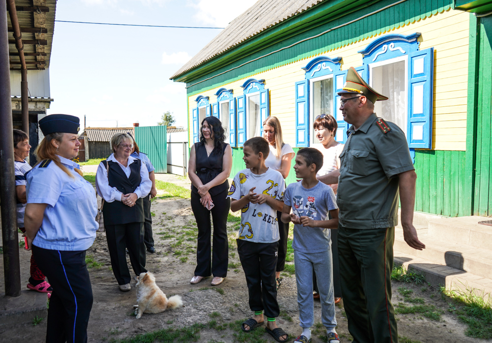 Сейчас Елена и Леонид Пищало воспитывают семерых мальчишек, которые, увидев большую компанию гостей, радостно торопятся навстречу и приглашают во двор. Улыбчивые и общительные, ребята принимают подарки и сладкие угощения, но затем старшие возвращаются к работе – надо починить школьный триммер, а младшие охотно общаются с гостями. Особенный интерес у Алексея и Артура – к военкому Андрею Рынейскому: свои детские мечты они смело доверяют человеку в форме. Он, хитро улыбаясь, намекает, что нужно хорошо учиться, чтобы стать военным, а поскольку погодки – 6-классники, то у них еще есть время исправить (если надо) и учебу, и поведение.