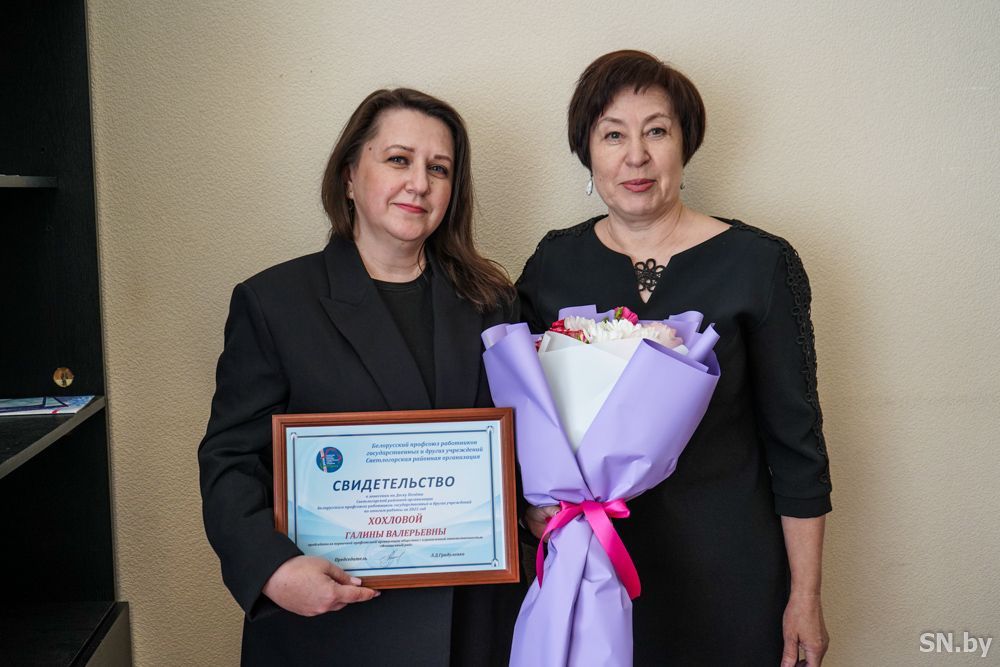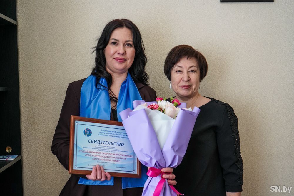 Сертификаты о занесении на Доску почета Светлогорской районной организации Белорусского профсоюза работников государственных и других учреждений председатель организации Людмила Градуленко вручила общественному инспектору по охране труда Татьяне Отойковой (Департамент охраны МВД); социальному партнеру Елене Кацуба (ТЦСОН), председателям первичек Виктории Мазур (управление по труду, занятости и соцзащите населения), Галине Хохловой (ООО «Финансовый рай»), Марине Плисневич (ЛТП-1); лучшая первичная организация – в представительстве «Белгосстраха» по Светлогорскому району. Людмила Дмитриевна выразила благодарность всем, кто всей душой болеет за свои коллективы и готов прийти на помощь, ведь профсоюзы – сила, с помощью которой можно решить многие проблемы.