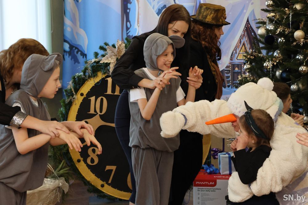 В сегодняшней сказке к ребятам на праздник заглянули традиционные новогодние герои Дед Мороз и Снегурочка, Снеговик и волшебный Часовщик, которым пришлось столкнуться с кознями Снежной Королевы. Историю наполнили песни и танцы, которые с удивительным артистизмом исполнили воспитанники Светлогорского районного ЦКРОиР и гости их праздника, чем смогли растопить ледяное сердце Снежной Королевы. Сказочная история не смогла оставить равнодушными никого из участников праздника, а потому почетные гости, в числе которых были начальник ВМУ ПО «Белоруснефть» Константин Шевеленко, начальник Светлогорской межрайонной инспекции охраны животного и растительного мира Андрей Тимощенко и депутат Светлогорского районного Совета депутатов, главный редактор газеты «Светлагорскія навіны» Елена Шишкова, охотно присоединились к поздравлениям и подарили ребятам приятные и нужные подарки.