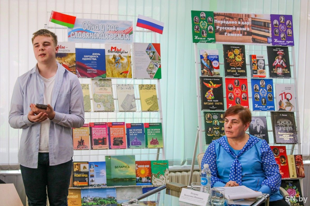 В роли экспертов встречи выступила библиотекарь Козловской сельской библиотеки, член Паричского поискового отряда «Эстафета памяти» Валентина Петрова. Также к диалогу в онлайн-режиме присоединились председатель Гомельского областного отделения РОО «Русское общество» Елена Шатько и член Общества Светлана Скакун. Приветствуя участников встречи, представители организации рассказали о многочисленных российско-белорусских проектах, в которых активно проявляет и развивает свои умения и таланты молодежь. Наука и образование, математика, STEAM-фестивали, роботурниры – встречаясь на таких фестивалях, увлеченная общим делом молодежь делится опытом, узнает новое, профессионально растет, а главное, приобретает новые знакомства, расширяя горизонты дружбы. Ребята понимают, что многое объединяет два славянских народа, близких по культуре, традициям, обычаям и менталитету.