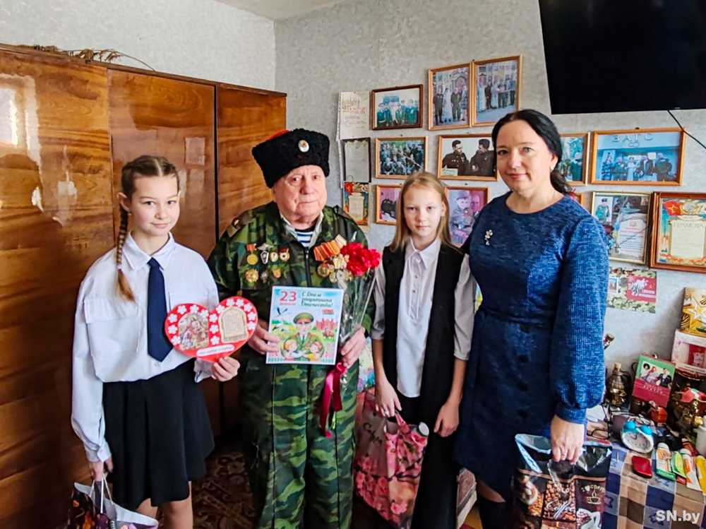 В День защитника Отечества особое внимание ребята уделили участнику боевых действий в Сирии и Афганистане Борису Федоровичу Дрозду, который также является жильцом Дома сопровождаемого проживания.