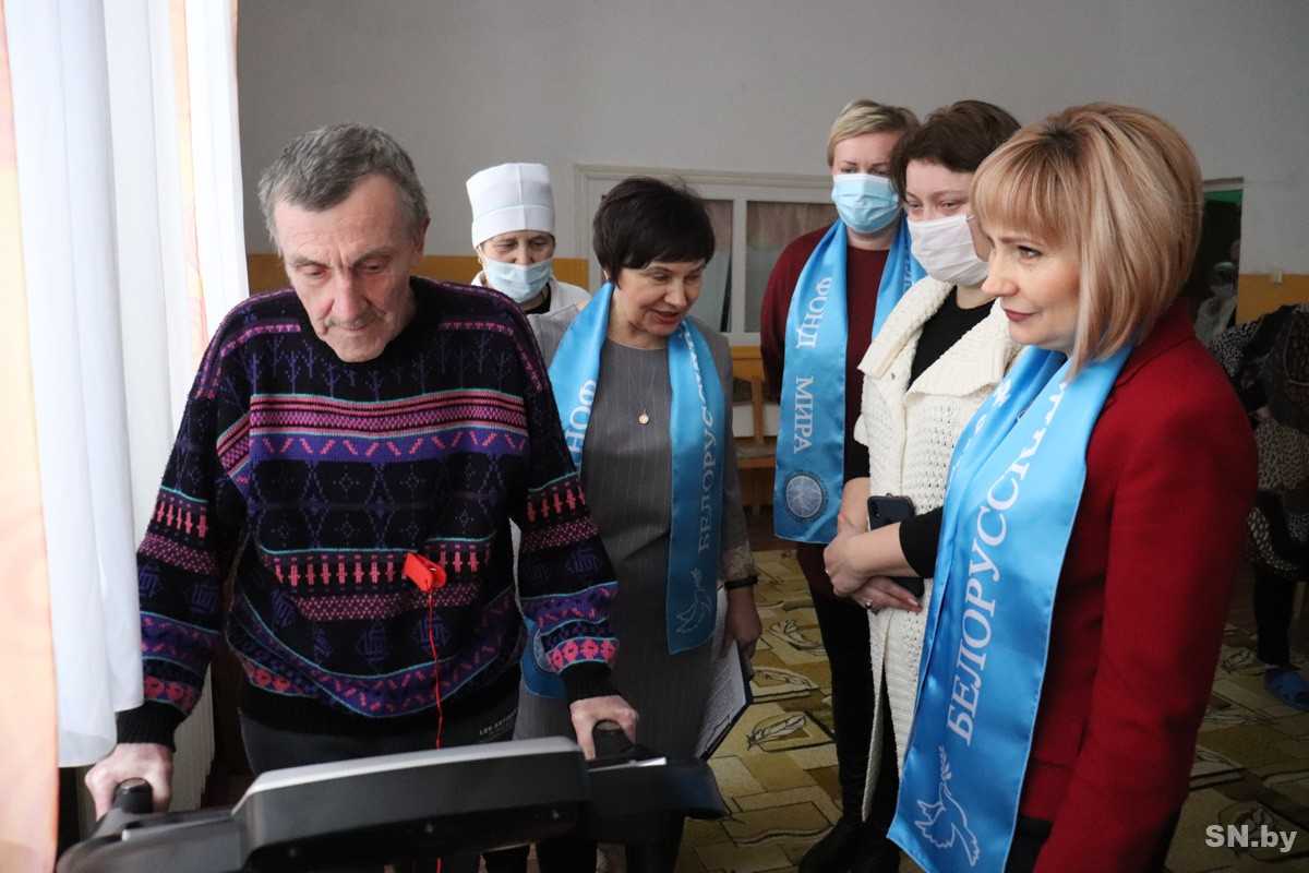 — Каждый год мы приезжаем в отделение со сладкими подарками, а в этом году в связи со сложной эпидемиологической обстановкой и ограничением выхода из учреждения администрация центра заказала тренажер для поддержания физической активности пожилых людей и инвалидов, проживающих в отделении, – рассказала председатель Светлогорской районной организации ОО «Белорусский фонд мира» Елена Шишкова. – Гомельское областное отделение Фонда мира выделило средства для приобретения специального тренажера, который активно уже используют жильцы центра.