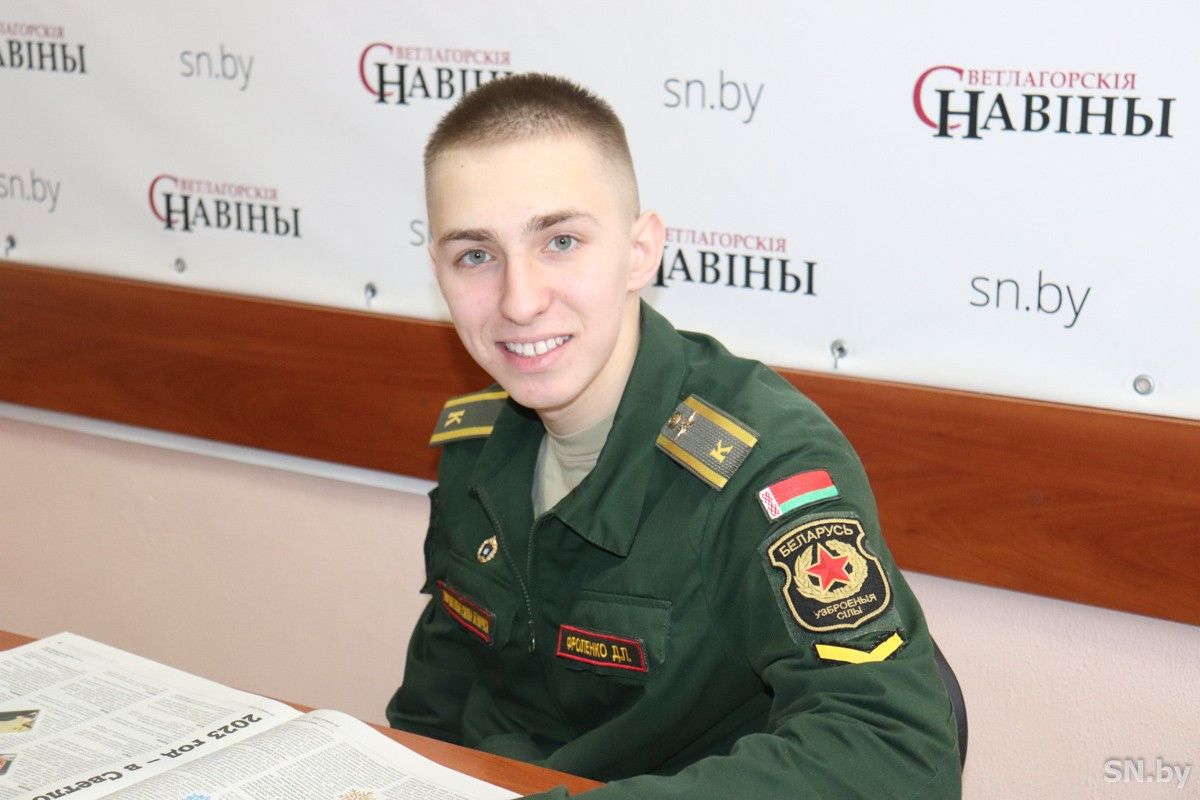 Молодой бодрый голос в телефонной трубке по-военному четко и ясно доложил мне, что курсант Дмитрий Фроленко – на месте (у дверей редакции – прим. авт.) и готов побеседовать со мной. Молодой человек чуть более полугода назад закончил СШ №12 г.Светлогорска, а военная выправка уже заметна во всем: и в одежде, и в осанке, но общение было легким и интересным, поэтому время пролетело незаметно.