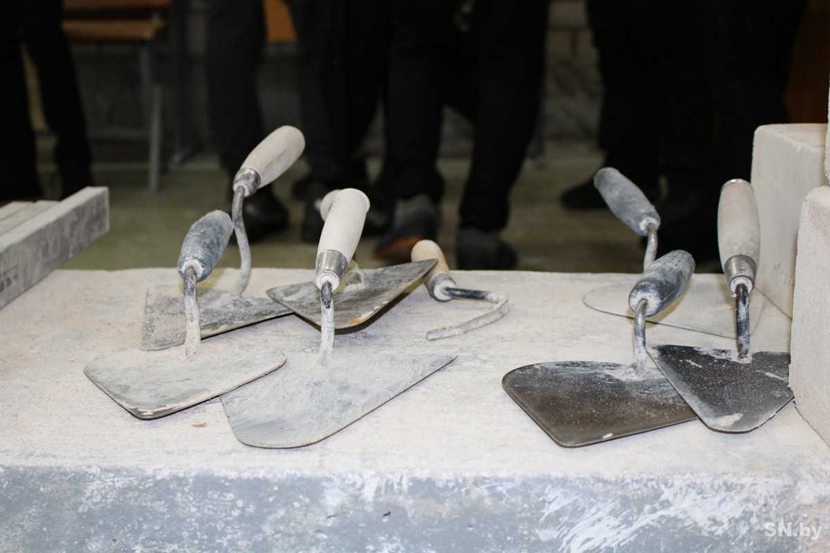 А чтобы еще больше заинтересовать подростков, теоретическая часть была закреплена практикой: в мастерских отделочных работ учащиеся группы С-107-20 колледжа под руководством преподавателя строительных дисциплин Максима Короля провели мастер-класс. Глядя, как лихо учащиеся колледжа управляются с блоками, нашлись и среди школьников желающие взять в руки строительный инструмент. Остальные с интересом поглядывали на смельчаков и оценивали их работу. А немного поодаль девушки беседовали с Александром Ждановичем: их, видимо, заинтересовали некоторые строительные профессии.
