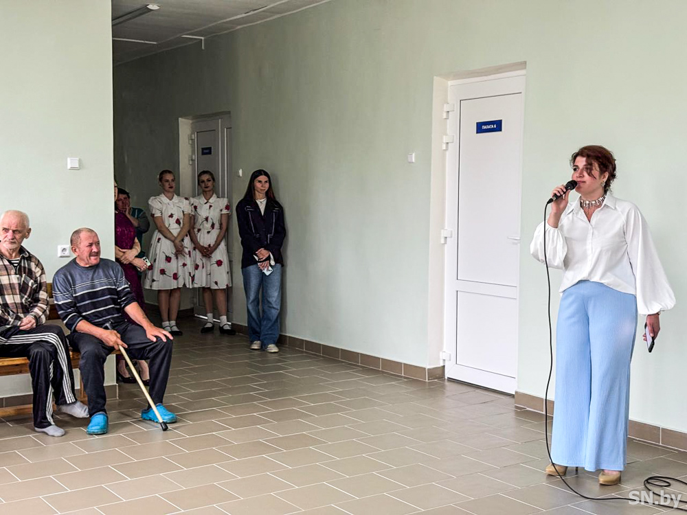 Кроме того, вместе с Сосновоборским домом культуры гости организовали музыкальную программу. Надо ли говорить, какая особенная атмосфера тепла и душевности царила в этот день в больнице. Артисты с трепетом исполняли популярные песни, зрители, со слезами на глазах, подпевали, не прекращая благодарить своими аплодисментами.