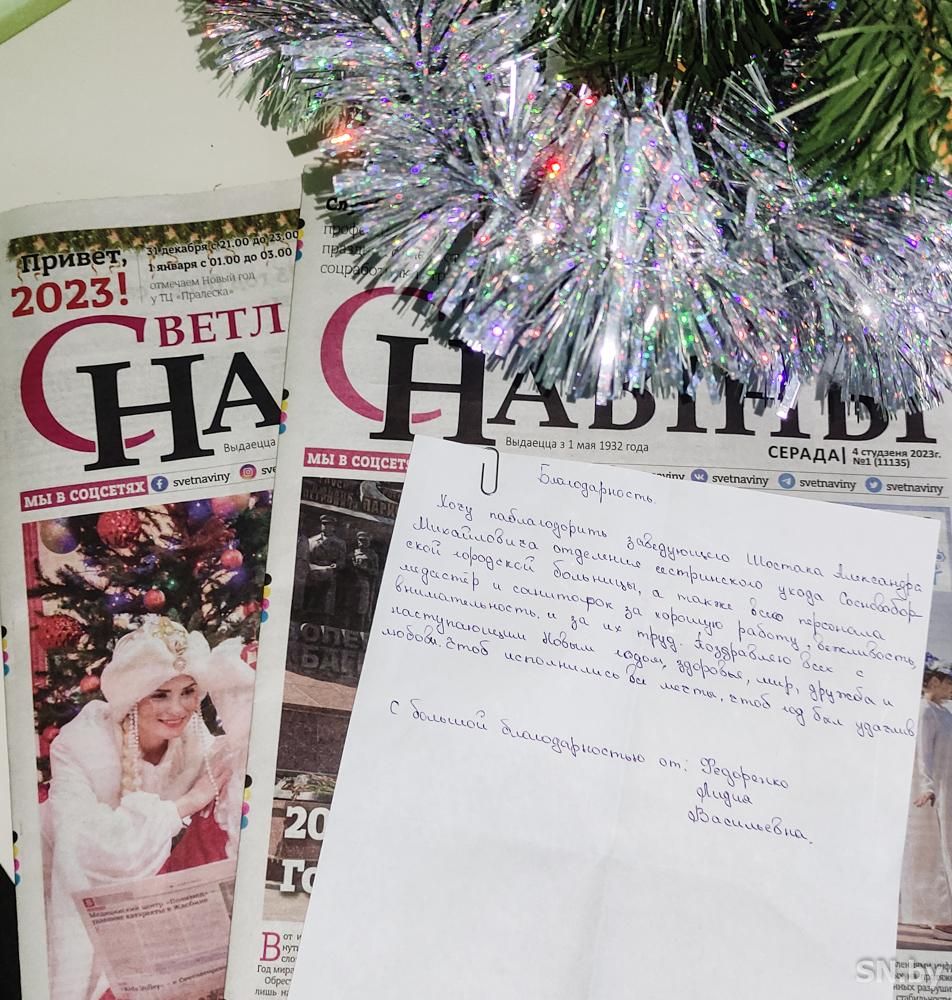 Очередное письмо в редакцию «СН» прислала наша читательница Лидия Федоренко. В нем она благодарила заведующего Сосновоборской больницы Александра Шостака. Также женщина признательна персоналу отделения, осуществляющему сестринский уход: «Медсестрам и санитаркам – за хорошую работу, вежливость, внимательность, за их ежедневный труд, который они оказывают нуждающимся в паллиативной медицинской помощи».