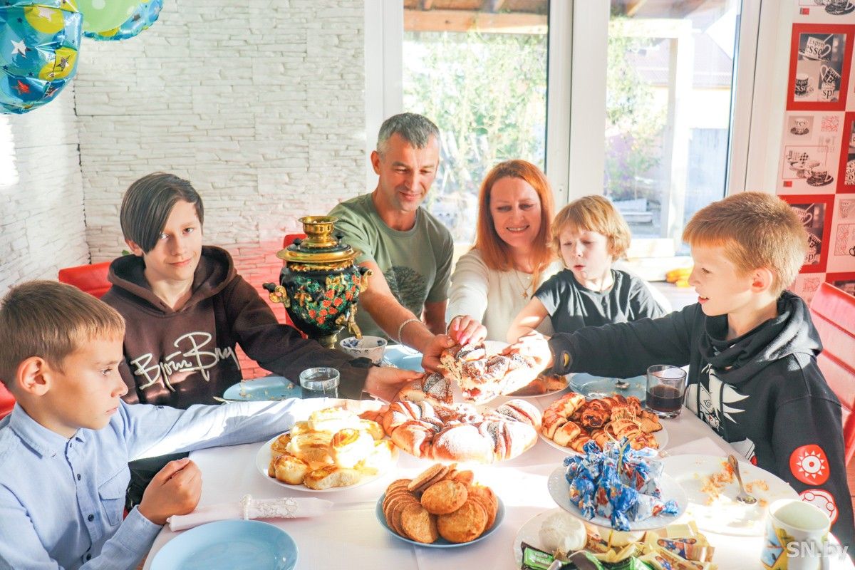 В семье Светланы и Вячеслава Войтюховских – пятеро детей. Ксения – единственная дочь, ей уже 20, окончила медицинский колледж, работает медсестрой в детском саду. Старшему из сыновей Яну – 12 лет, он будущий IT-программист и сейчас прилагает максимум усилий, чтобы его мечта осуществилась. Погодкам Славе и Максиму – 9 и 8. Несмотря на юный возраст, Слава преуспел в готовке: ни один праздничный стол не обходится без его блюд. Берет пример с брата и Максим: говорит, что, когда вырастет, станет кулинаром. Ну, а четырехлетний Матвей – в танцах: он – натура творческая.