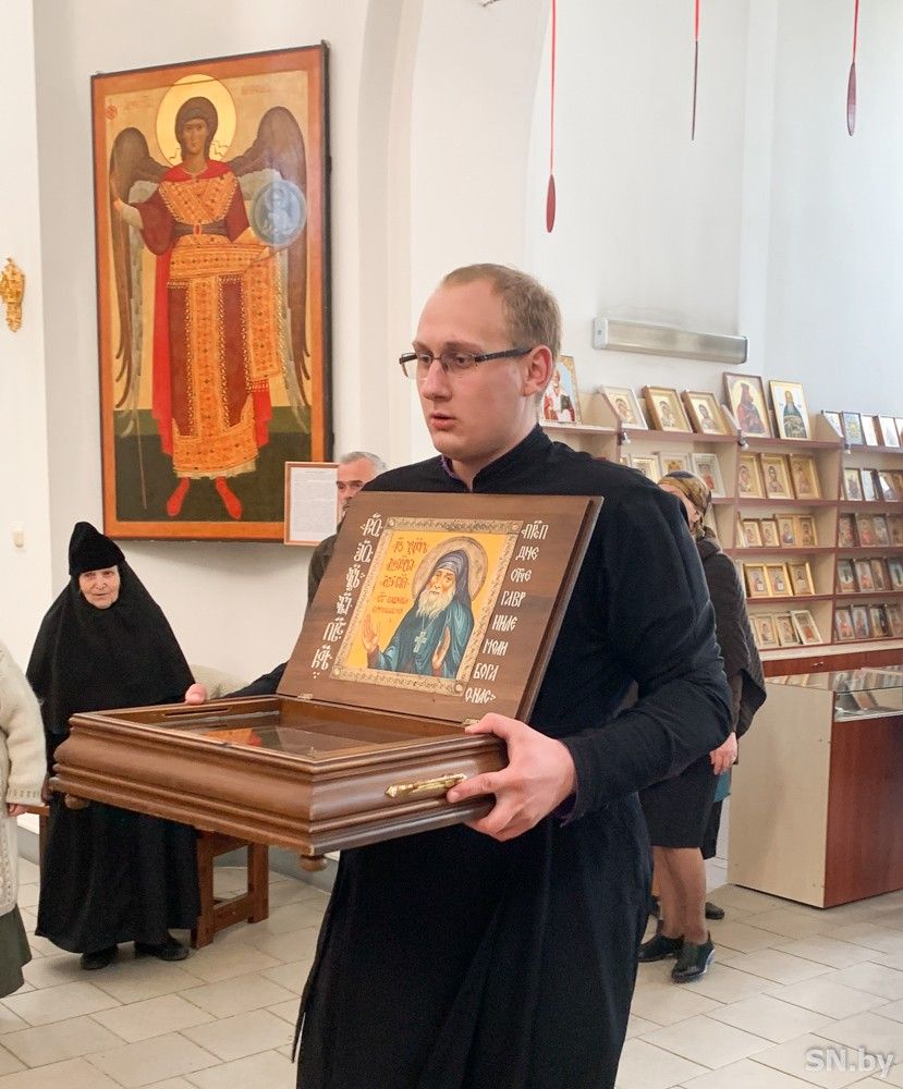 По благословению Высокопреосвященнейшего Стефана, архиепископа Гомельского и Жлобинского 8 мая для молитвенного поколения верующих в храм Преображения Господня в г. Светлогорске были доставлены икона с мощами святых преподобных Гавриила Самтаврийского и Серафима Саровского, а также ковчег с частицами мантии, скуфьи преподобного Гавриила и личные вещи старца.