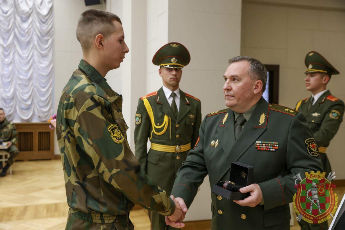 Министр обороны Республики Беларусь генерал-лейтенант Виктор Хренин в торжественной обстановке вручил мамам лучших военнослужащих Благодарственные письма и цветы, а их сыновьям ценные подарки – часы и майки из коллекции «Мерч Первого». По словам Светланы Анатольевны, это было очень волнительно и приятно.