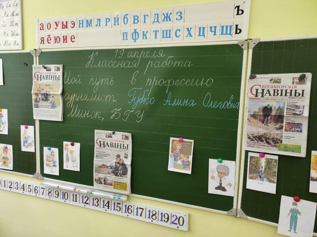 На этой неделе школьные будни учащихся СШ №6 наполнены интересными мероприятиями: в гости к школьникам приходят представители разных профессии. На тематический классный час «Мой путь в профессию» к кадетам четвертого класса пришла работник редакции «Светлагорскiя навiны» Алина Губко.