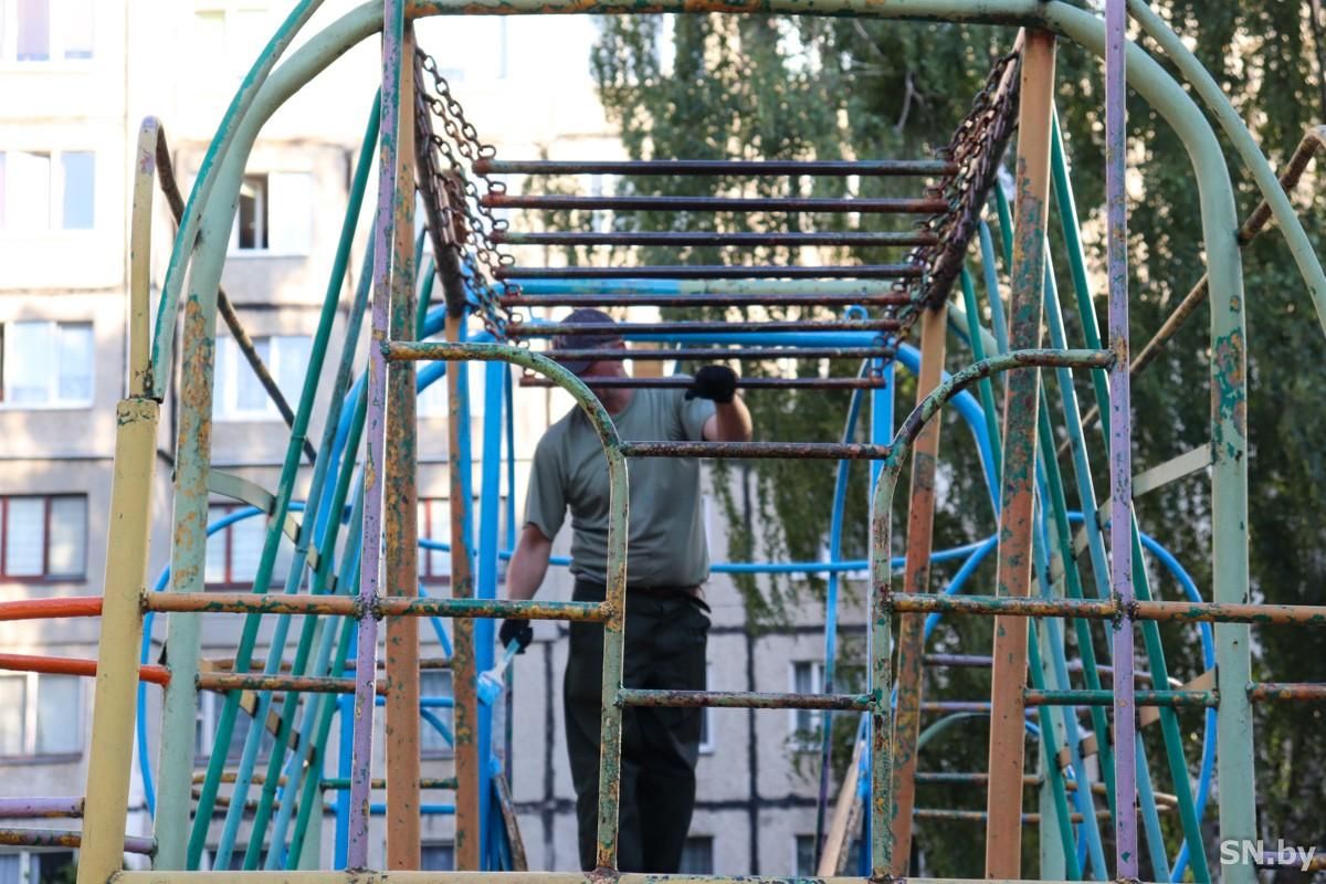 Огромный «слон» всегда был гордостью этого двора. А сколько шишек, синяков, ушибов здесь было получено! Но когда это останавливало детей? Еще не одно поколение будет здесь лазить, прыгать, лихо спускаться с горки-хобота. А потому работа закипела. Верхнюю часть взяли на себя работники КЖУП «Светочь», а внизу работали кисточками депутаты и руководители предприятий. К слову сказать, краску и кисти каждый из них приобрел и принес самостоятельно.