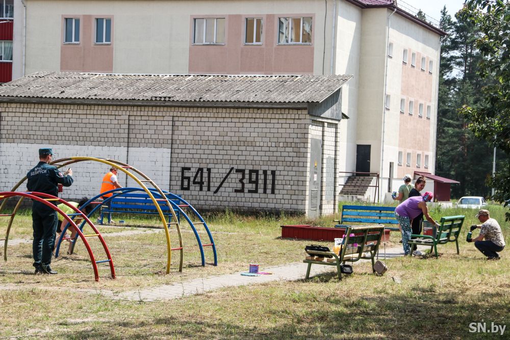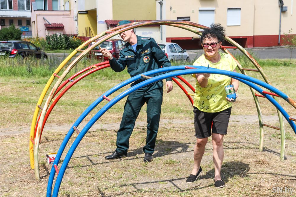Окна квартир у соседей по дому Анжелики Анатольевны и Ирины Валерьевны выходят прямо на спортивные турникеты. «Печально смотреть на их серый вид, хочется уже наконец добавить им ярких красок и сделать жизнь даже вокруг себя разноцветнее, - отмечают женщины. – Такая приятная работа на свежем воздухе нам только в радость. Уверены и местная детвора оценит ее по достоинству». К диалогу женщин присоединяется двое молодых людей. Артем Савостеенко и Екатерина Рогович – молодые сотрудники Светлогорского РОЧС. Когда узнали о том, что могут помочь в покраске детских игровых форм, тут же согласились. Считают, что это здорово, когда общее дело объединяет людей всех возрастов и профессий и приносит удовлетворение окружающим.