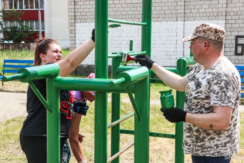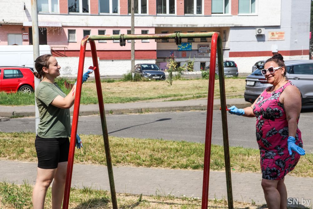 Несмотря на то, что работают не профессионалы, их оперативности и аккуратности могут позавидовать даже маляры с опытом. Ольга Статкевич – не новичок в плане благоустройства дворовых территорий. Два года назад благодаря ее инициативе и участию жильцов близлежащих домов в соседнем дворе было установлено современное детское игровое оборудование. Женщина отмечает, что буквально 2 недели назад с таким же воодушевлением со своими соседями красила игровые формы у себя, сегодня присоединилась к работе здесь. «Все это мы делаем не для нас, а для наших детей и внуков. Ведь, глядя на то, с какой радостью и удовольствием они пробуют в деле «новые» горки, турникеты, качели, понимаешь, что все было сделано не зря», – делится своим мнением Ольга Статкевич.