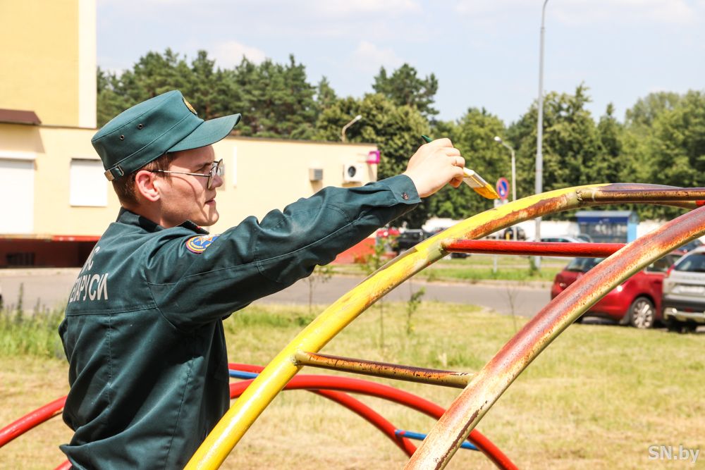 Сегодня в арсенале дружной сплоченной команды активистов – яркие краски, кисти, перчатки и хорошее настроение. Несмотря на то, что у участников акции большой фронт работы – игровые формы у домов №№13, 13а, 10 м-на Полесье – они не боятся испачкаться и потратить пару часов времени на то, чтобы сделать подарок детям.
