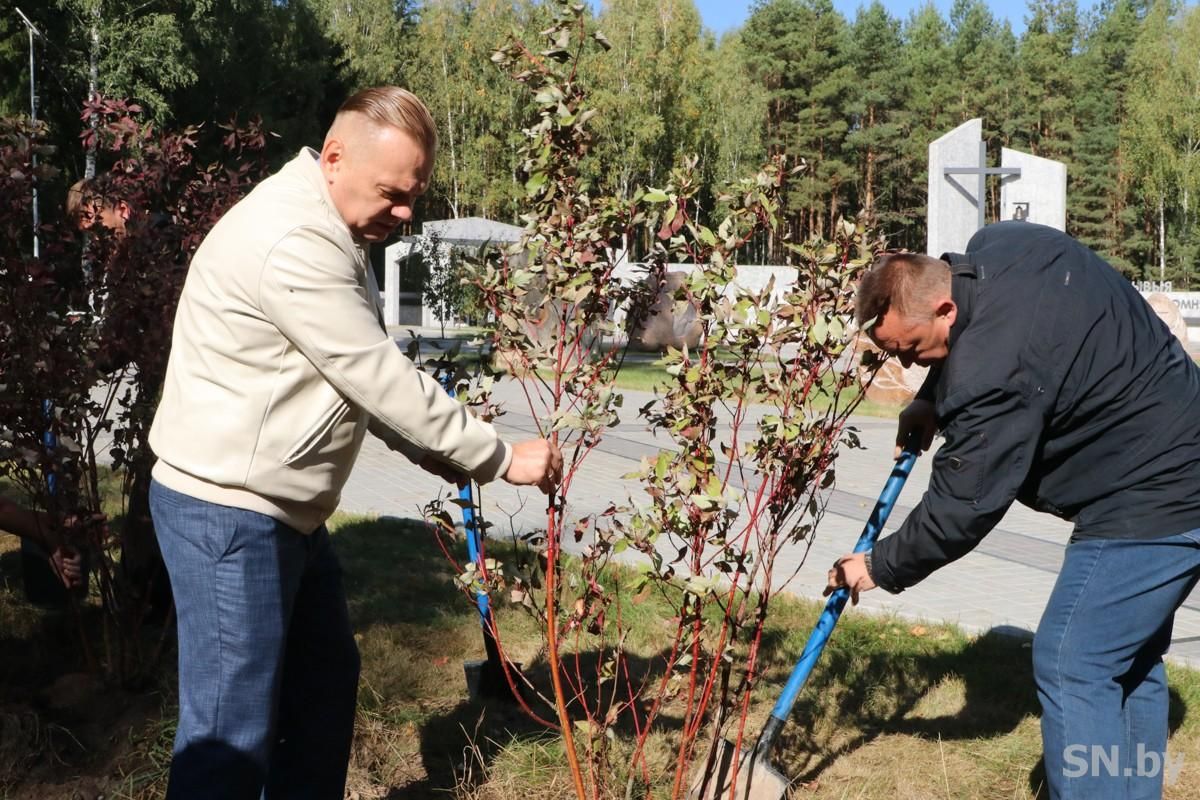 Участники мероприятия высадили на территории мемориального комплекса декоративные кустарники, которые послужат украшением памятного места и дополнят его композицию.