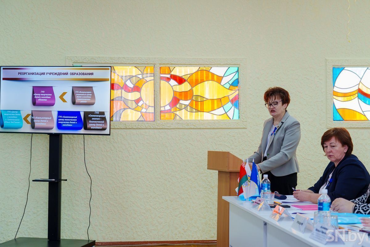 Реализация программ Федерации профсоюзов Беларуси на 2025–2029 годы и задачи на 2026 год. О работе организации за 2025 год. Отчиталась председатель районной организации Елена Хулуп. Выступили начальник отдела образования Жанна Черкас и председатель ППО ГУО "Центр творчества детей и молодёжи "Ювента"г.Светлогорска" Ольга Евсеева.