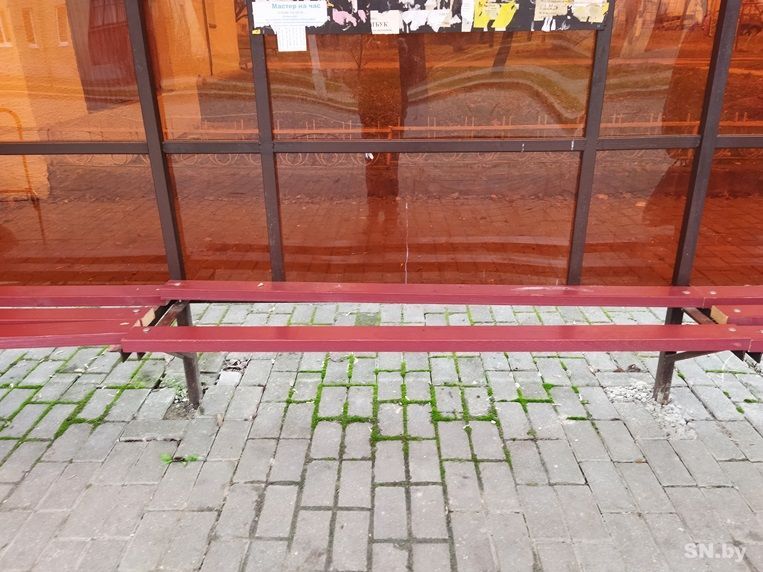 Нечто подобное произошло и на остановке «Улица Мирошниченко». Неизвестные выкрутили болты крепления еще сверкающих свежей краской деревянных перекладин, а одна из них и вовсе исчезла в неизвестном направлении. Возможно, ее прихватил «домовитый» прохожий: мол, в хозяйстве все пригодится.