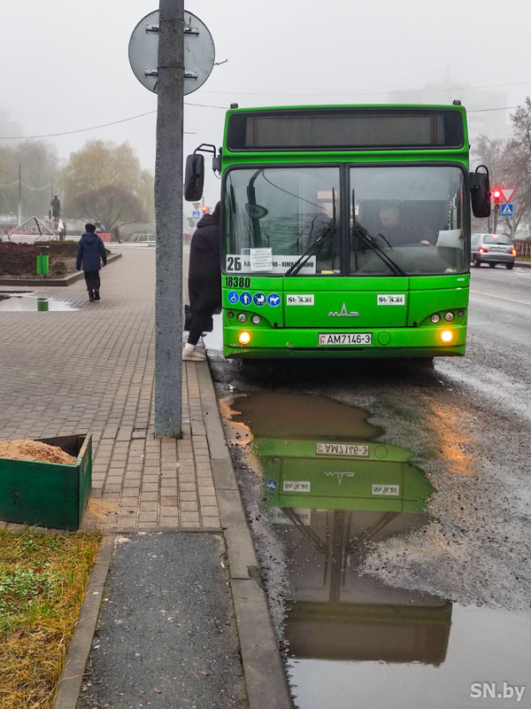 Раннее утро в рабочий день собирает большое количество пассажиров на автобусных остановках. Но, к сожалению, иногда они в буквальном смысле являются полосой препятствий, которую не всегда можно преодолеть без последствий. Например, на остановке «Улица Мирошниченко» постоянно стоит большая лужа, и когда к ней подходит автобус, открываются двери, на раздумье у пассажира – считанные секунды, чтобы принять решение: ступать в лужу или нет.