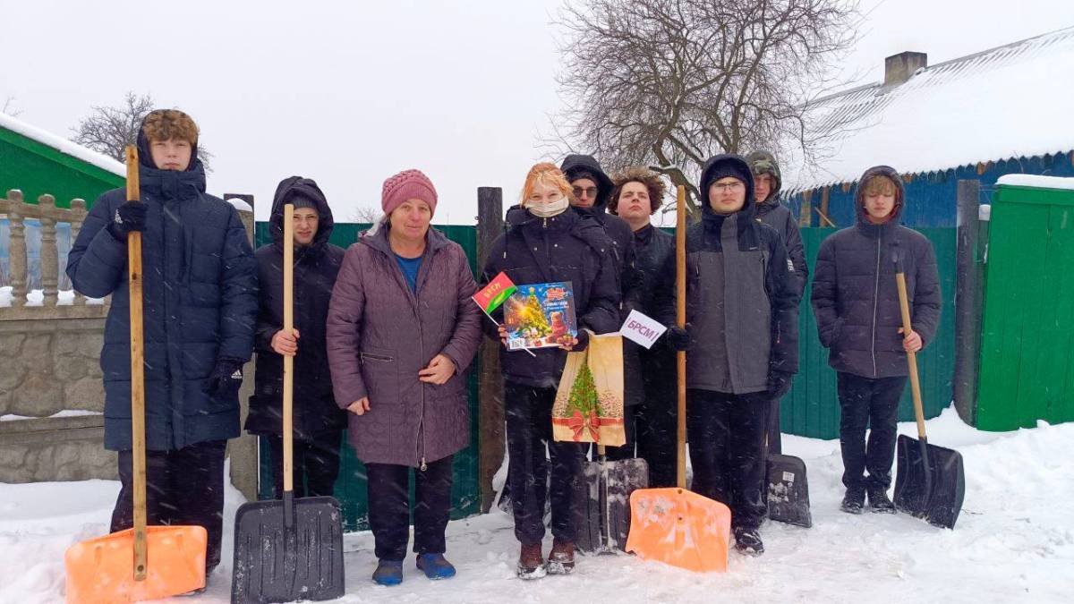 Светлогорские юные миротворцы помогли ветеранам педагогического труда расчистить двор от снега
