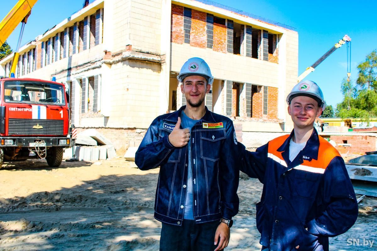 По улице Ленина в Светлогорске проходит реконструкция здания суда: здесь работники ОАО «Строительный трест №20» ведут демонтажные работы и усиливают фундамент старого корпуса. Одновременно работники СУ-257 треста делают новую трехэтажную пристройку. Уже готово подвальное помещение, каменщики выгнали кирпичную кладку под плиты перекрытия. Как раз на этом строительном объекте опыт старших перенимают 9 молодых ребят, которые трудятся в студенческом отряде. Здесь они постигают азы профессии, работают сообща и учатся быть лучшими в своем деле. Вместе с первым секретарем РК ОО «БРСМ» Кристиной Алистранковой отправляемся на стройку, чтобы расспросить, как проходят трудовые будни молодых ребят и почему отдыху они предпочли работу?