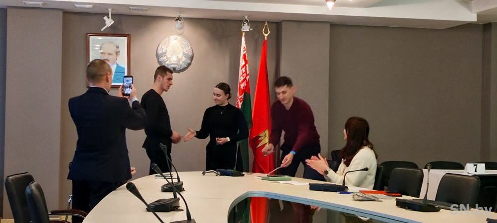 Первый секретарь РК ОО «БРСМ» Варвара Савицкая рассказала участникам заседания о работе союза молодежи и вручила билеты новым членам БРСМ.