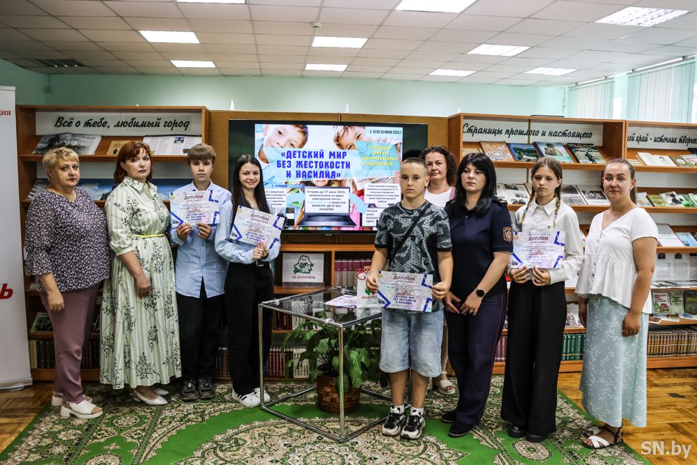 Сегодня в Центральной районной библиотеке состоялось награждение победителей и призеров конкурса. Поблагодарили ребят за хорошую работу и поздравили с успешными выступлениями главный специалист отдела образования райисполкома Наталья Шестакова, заместитель председателя комиссии по делам несовершеннолетних райисполкома Наталья Кендыш, старший инспектор ИДН Светлогорского РОВД Мария Шимборская, первый секретарь РК БРСМ Яна Нициевская и председатель районной организации ОО «Белая Русь» Виктория Бусел.