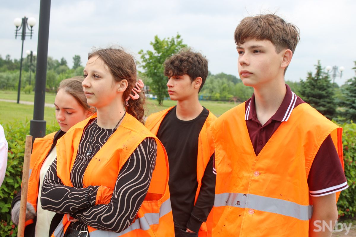 15 несовершеннолетних ребят – участники экологического студотряда –трудятся в цехе по благоустройству КЖУП «Светочь». Сегодня их место работы – на Набережной, где их встречает депутат Палаты представителей Национального собрания Республики Беларусь Елена Лаптева. Трудовой десант уже в деле – ярко оранжевые жилетки заприметить издалека не так уж и сложно. Елена Евгеньевна рада встрече с молодыми людьми, интересуется у подрастающего поколения их настроением, первыми впечатлениями о работе и планами на лето.
