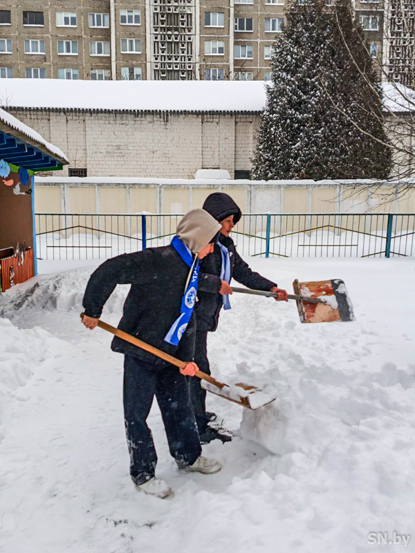 Учащиеся-миротворцы средней школы №10 г. Светлогорска имени С. Л. Красноперова вместе со взрослыми вышли на расчистку города от снега. Маршрут юных миротворцев на этот раз пролегал в детский сад №15, который находится в непосредственной близости со школой.