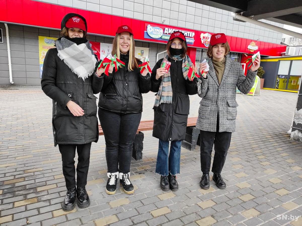 Юноши и девушки напоминали прохожим о предстоящем важном политическом событии и прикалывали бутоньерку, состоящую из красно-зеленой ленточки и яблоневого цвета, на верхнюю одежду светлогорцев. В свою очередь прохожие благодарили молодежь за такой подарок, активную гражданскую позицию и небезразличие к судьбе родной Беларуси.