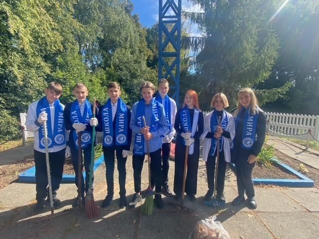 Юные миротворцы из Школы мира СШ № 11 облагородили прилегающую территорию у памятника героям Великой Отечественной войны, державшим оборону на берегу Березины в боях с немецко-фашистскими захватчиками в 1943 году.