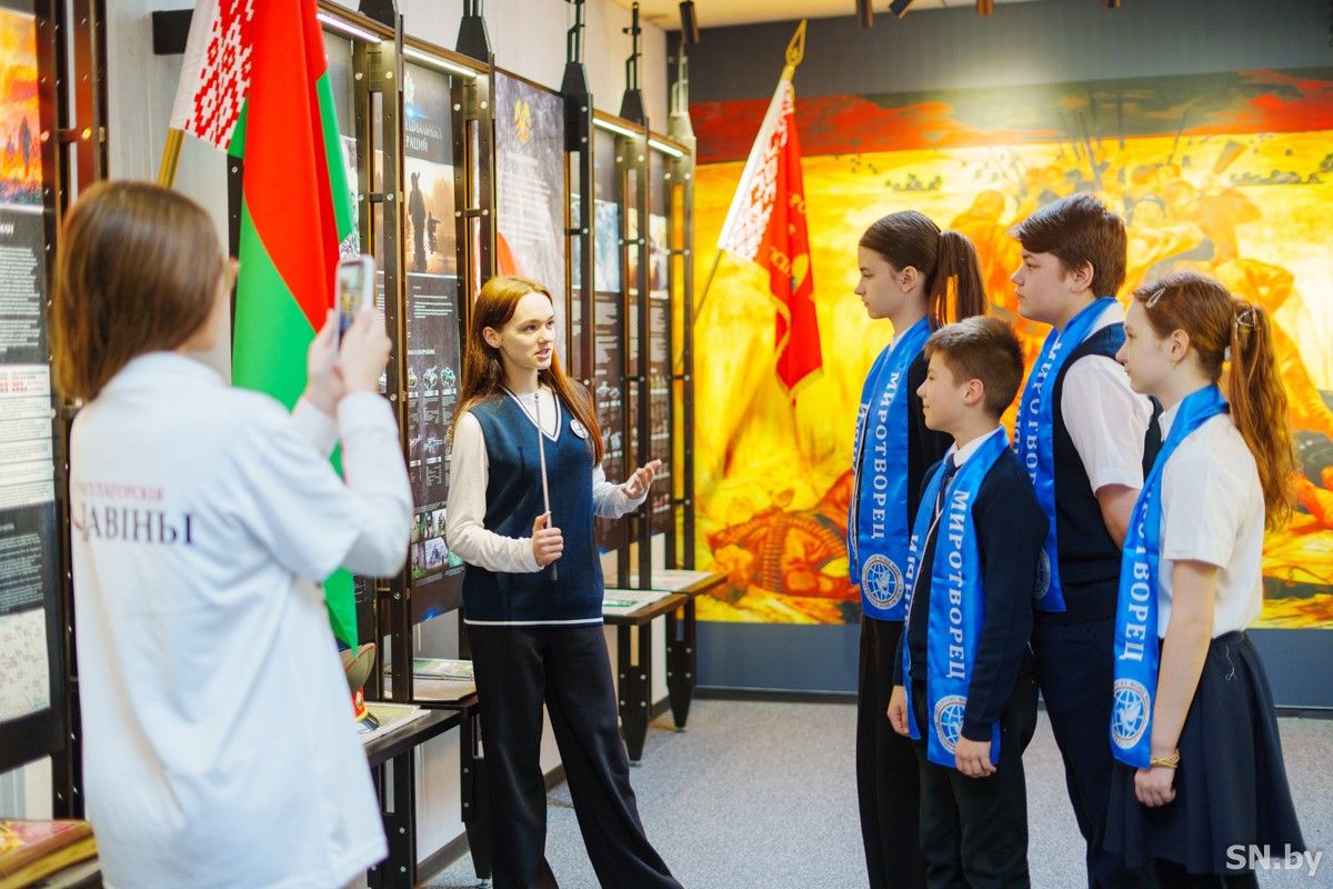 В преддверии Дня единения народов Беларуси и России юные миротворцы средней школы №10 г.Светлогорска им.С.Красноперова и корреспонденты молодежной редакции «New FISHки» провели для своих сверстников из г.Чернушка Пермского края виртуальную экскурсию по «Музею боевой славы».