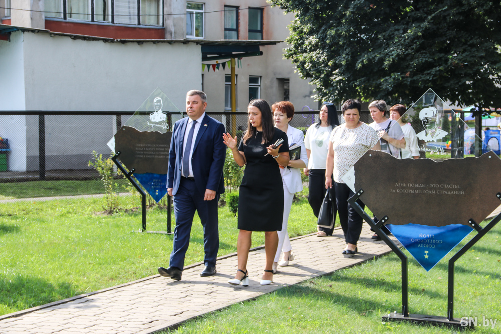 Средняя школа №10 им.С.Красноперова встретила членов комиссии благоустроенной пришкольной территорией. Прежде чем пройти в учреждение образования, директор Ирина Гвоздь показала гостям одну из главных достопримечательностей школы – Аллею памяти и славы, официальное открытие которой состоялось в День города. Комиссия во главе с председателем райисполкома Дмитрием Шабетником и начальником отдела образования райисполкома Жанной Черкас выразила искренние слова благодарности педагогам и ученикам за инициативу, направленную на сохранение исторической памяти. Подходя к школе, Ирина Гвоздь обратила внимание на новые оконные блоки, которые были заменены к началу нового учебного года. В планах – продолжить обновление.