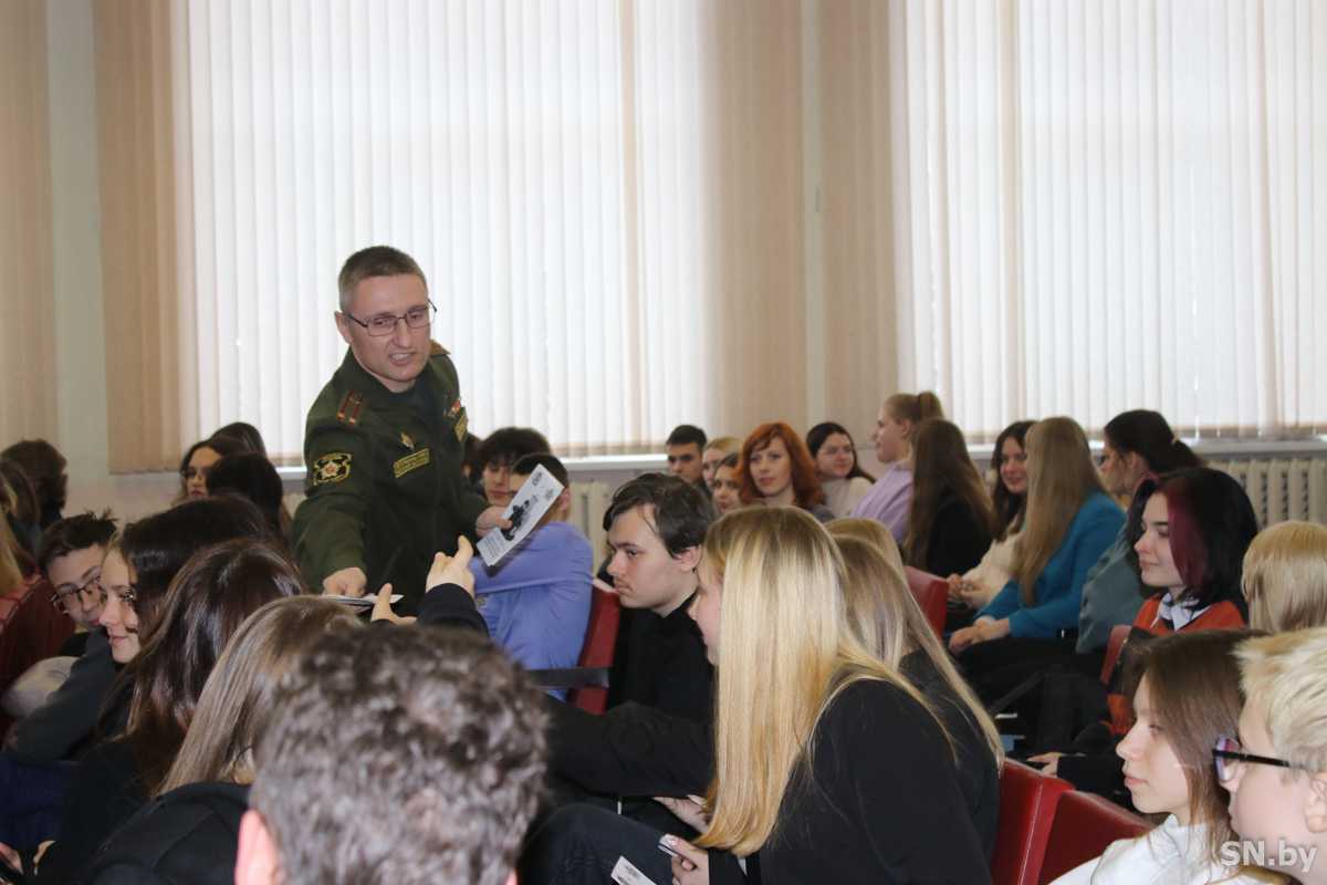 В гимназии представители Военной академии Республики Беларусь и Белорусского государственного университета транспорта рассказывали будущим абитуриентам о профессии военного.