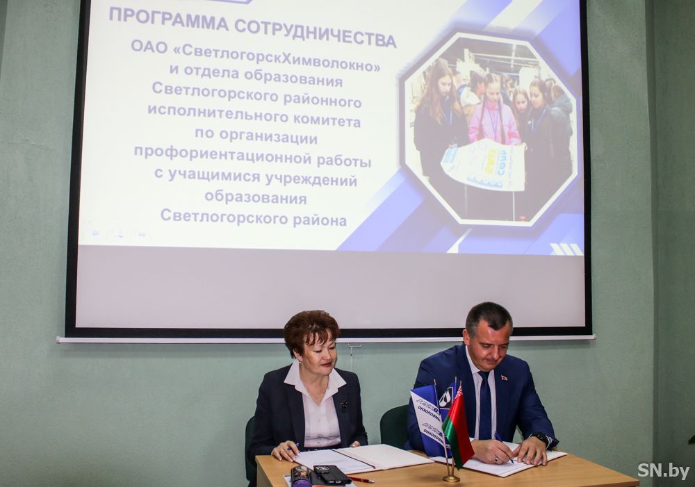 Соглашение о сотрудничестве сделает эту работу более разноплановой, насыщенной и систематической, уверены генеральный директор ОАО «СветлогорскХимволокно» Виталий Осипенко и начальник отдела образования райисполкома Жанна Черкас. Виталий Викторович отметил, что подписание договора – значимый шаг к решению кадрового вопроса, закрепления молодых специалистов в родном городе. В рамках реализации намеченной программы ребята познакомятся с различными профессиями и специальностями, востребованными на предприятии, узнают об особенностях условий труда и перспективах развития. Программа включает в себя различные виды взаимодействия предприятия и учреждений образования (начиная с детского сада и включая учащихся учреждений допобразования) и рассчитана на все возрасты. Это своего рода «образовательный маршрут», который будет вести ребенка от первого знакомства с промышленным гигантом до трудоустройства. Если школьника заинтересует работа, предложенные перспективы и он зарекомендует себя с положительной стороны, предприятие готово выдать будущему специалисту целевое направление для учебы в вузе. Кроме того, в рамках реализации профориентационной программы планируется проведение увлекательных акций и мероприятий, конкурсов и флешмобов, мастер-классов с призами и подарками.