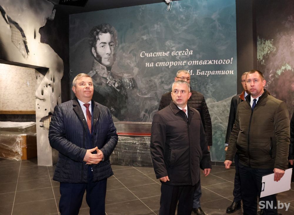 Во время визита в Светлогорский район председатель Гомельского облисполкома Иван Крупко ознакомился с ходом строительства на памятном знаке "Багратион". Вместе с руководителями предприятий и заинтересованных служб обсуждались текущие вопросы благоустройства, строительных работ, музеефикации и других аспектов.