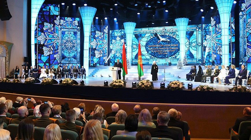 «Как и раньше в эти светлые праздничные дни, мы встречаемся, чтобы поблагодарить людей, которые самоотверженно служат своему народу и стране. Мы подводим итоги культурной и духовной жизни минувшего года. Он привел на эту сцену необыкновенно талантливых, чутких, искренне преданных своему делу белорусов. В том числе благодаря им мы достигли поставленных целей Года мира и созидания. Тем самым стали духовно сильнее и еще увереннее. Особенно на фоне событий, которые происходят вокруг нас», — отметил глава государства.