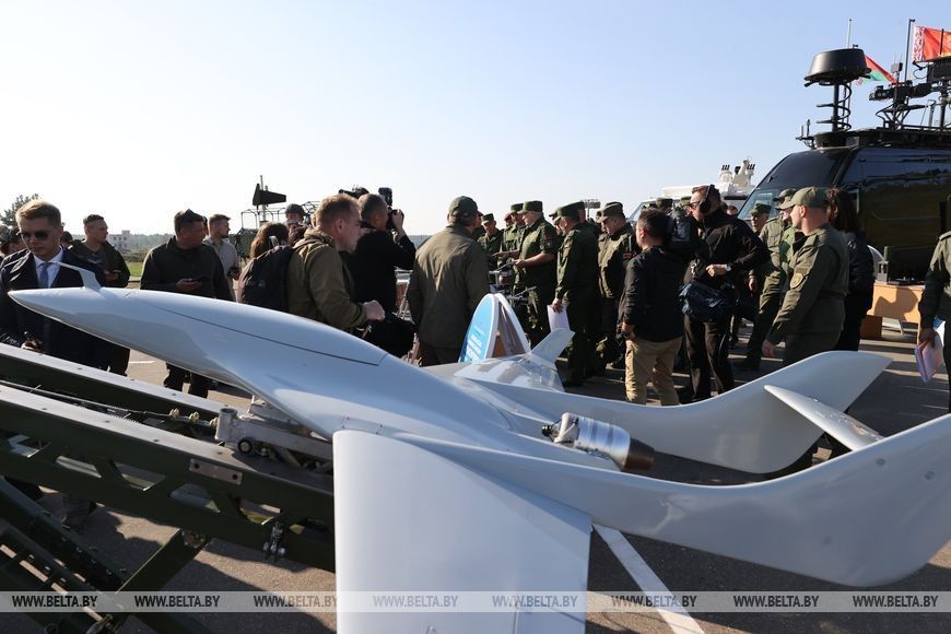 Президент Беларуси Александр Лукашенко во время посещения 230-го общевойскового полигона Обуз-Лесновский ознакомился с боевыми возможностями беспилотных летательных аппаратов отечественного производства и средств борьбы с БПЛА.